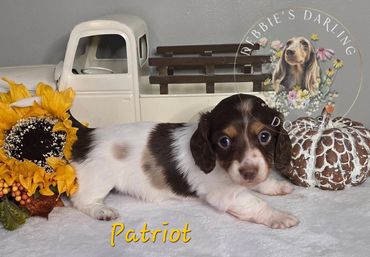 PATRIOT- LONG HAIRED CHOCOLATE AND TAN DAPPLE PIE (MINIMAL DAPPLE) FEMALE